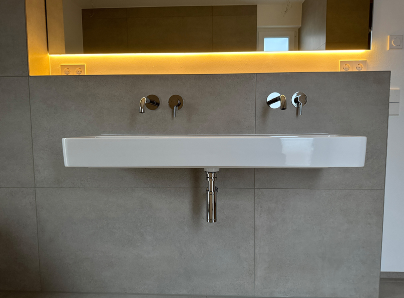 - barrierefreie Tageslichtbäder mit Großformatfliesen 120 x 60