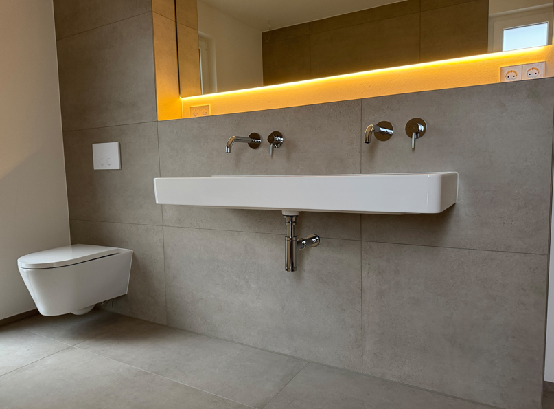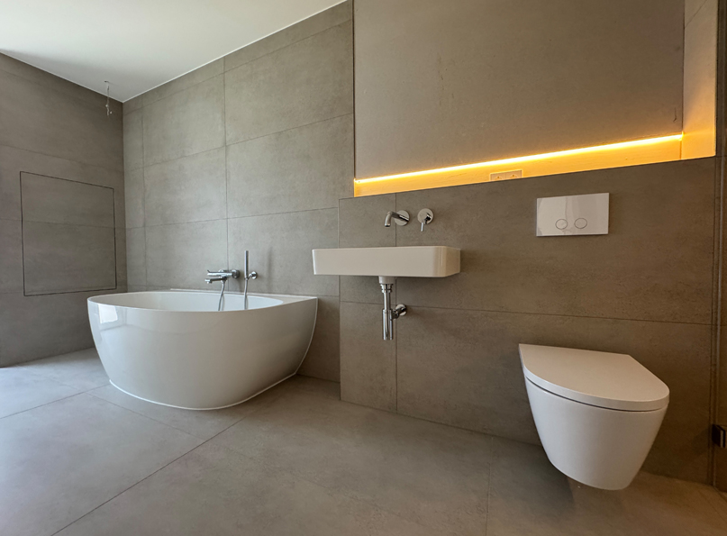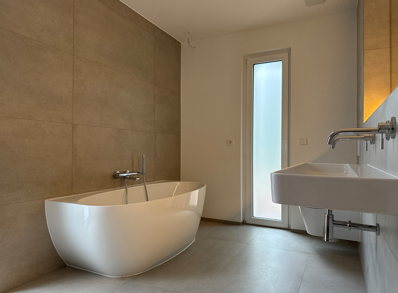 - barrierefreie Tageslichtbäder mit Großformatfliesen 120 x 60