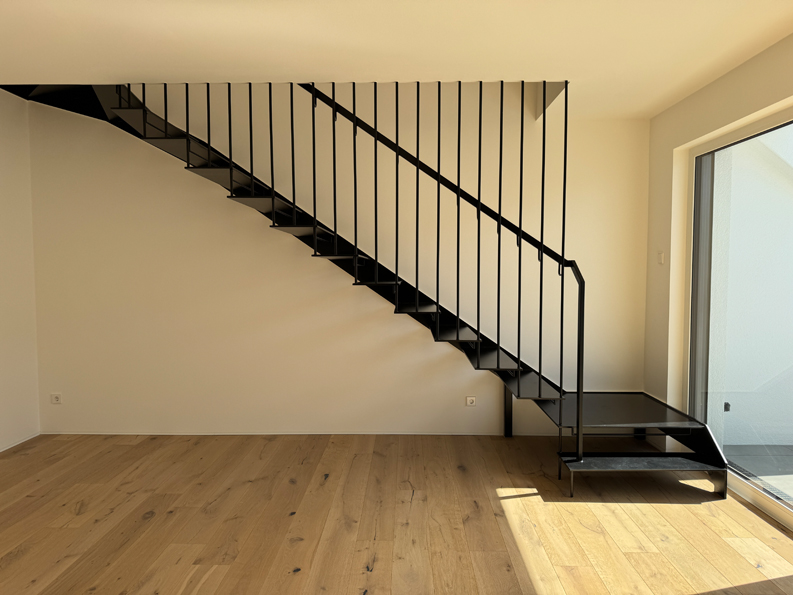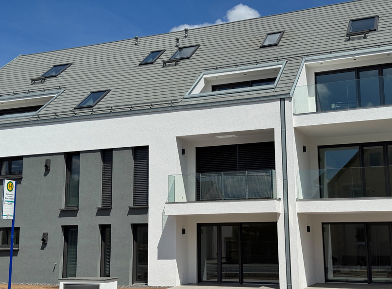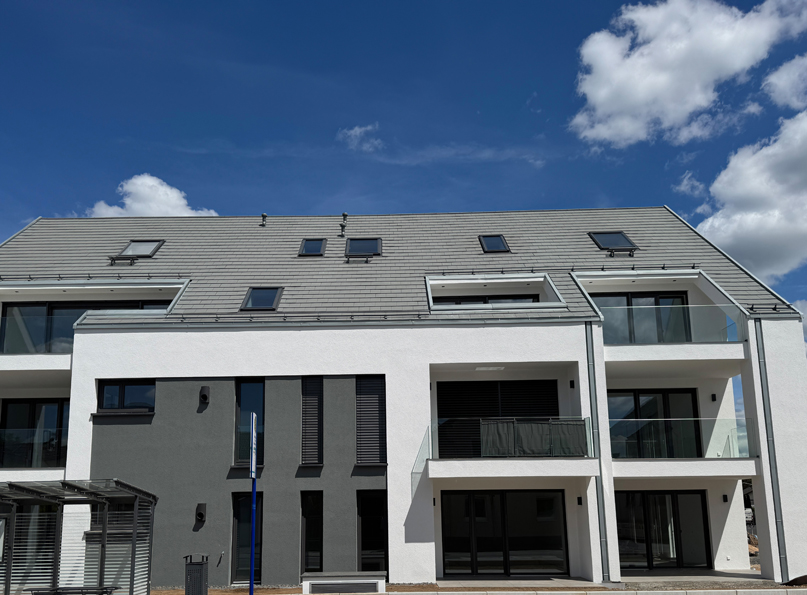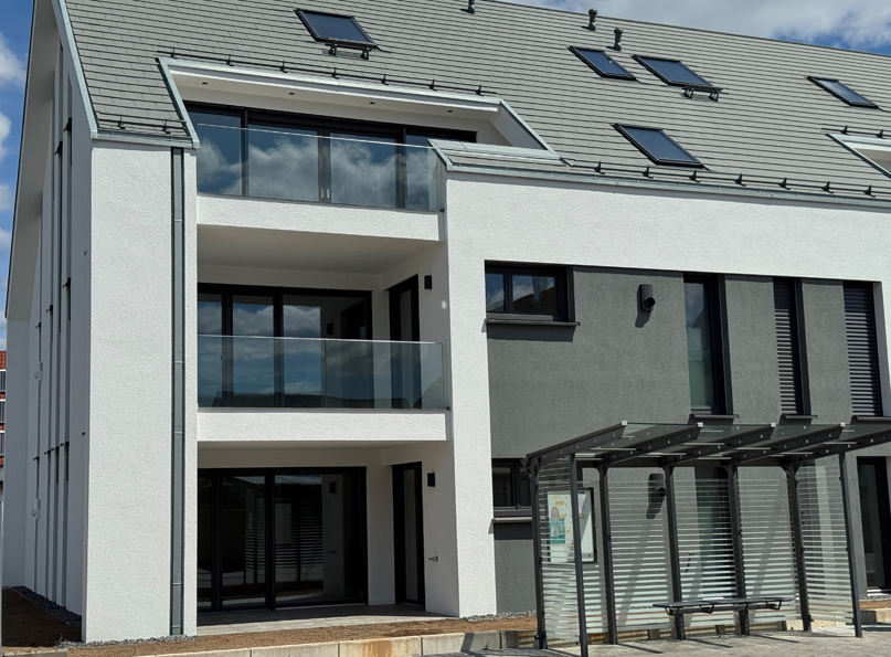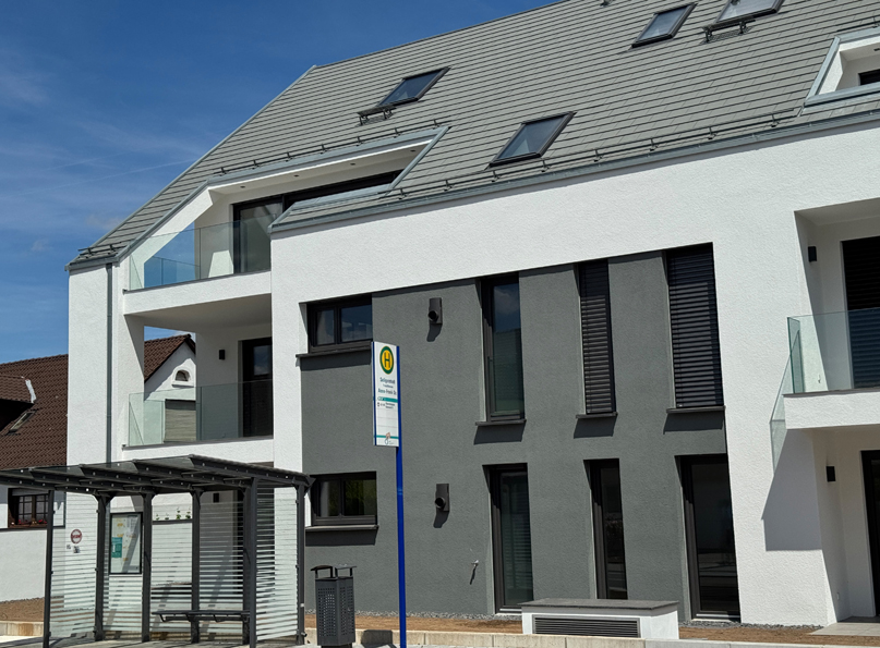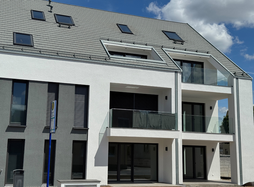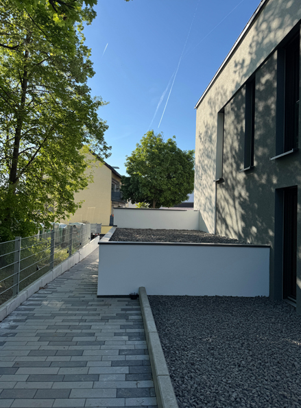 Das Neubauwohnprojekt, besteht aus zwei, weit über die gesetzlichen Mindeststandards geplanten, barrierefreien KfW40 Effizienzhäusern mit je 9 Wohneinheiten, Aufzug von Kellergeschoss — Dachgeschoss und einer Tiefgarage mit 27 extragroßen Pkw-Stellplätzen. Aufgrund des hohen Energiestandards, ist es möglich ein zinsgünstiges Darlehen über die KfW-Bank zu erhalten. Besonderes Merkmal ist die kubische Architektur der Häuser, mit einem umlaufenden Vordachrahmen an den Giebelseiten und farblich abgesetzten Rücksprüngen in den Fassadenflächen. Im Dachgeschoss befinden sich 3 und 4 Zimmer Maisonetten verbunden über eine eigene Innentreppe. Im Studio besteht die Möglichkeit, ein vollwertiges Bad nachzuinstallieren. Im Erd- und Obergeschoss befindet sich in der Gebäudemitte, je eine 2 Zimmer Wohnung , sowie eine 4 Zimmer Wohnung mit Südwestausrichtung und eine 3 Zimmer Wohnung mit Südostausrichtung. Ein echter flexibler Mehrwert der Grundgrissplanung ist, ein Masterbad für die Eltern und ein kleines Duschbad für Kinder oder Gäste. Bis auf die 3 Besucherstellplätze, befinden sich alle Pkw-Stellplätze unterhalb des Erdreichs, in der extra großzügig geplanten Tiefgarage. Dadurch entsteht sehr viel begrünte Fläche in der Außenanlage und Wohnungsgärten mit sehr großen Quadratmeterzahlen, von 32m² — 252m². Ziel der Planung war es, eine parkähnliche grüne Wohnanlage wie in der direkten Nachbarschaft im Maximilian-Kolbe-Haus entstehen zu lassen. Der Baubeginn ist bereits erfolgt. Die Fertigstellung ist für Frühjahr 2025 geplant. Projektbesichtigungen sind sonntags nach Abstimmung vor Ort möglich.